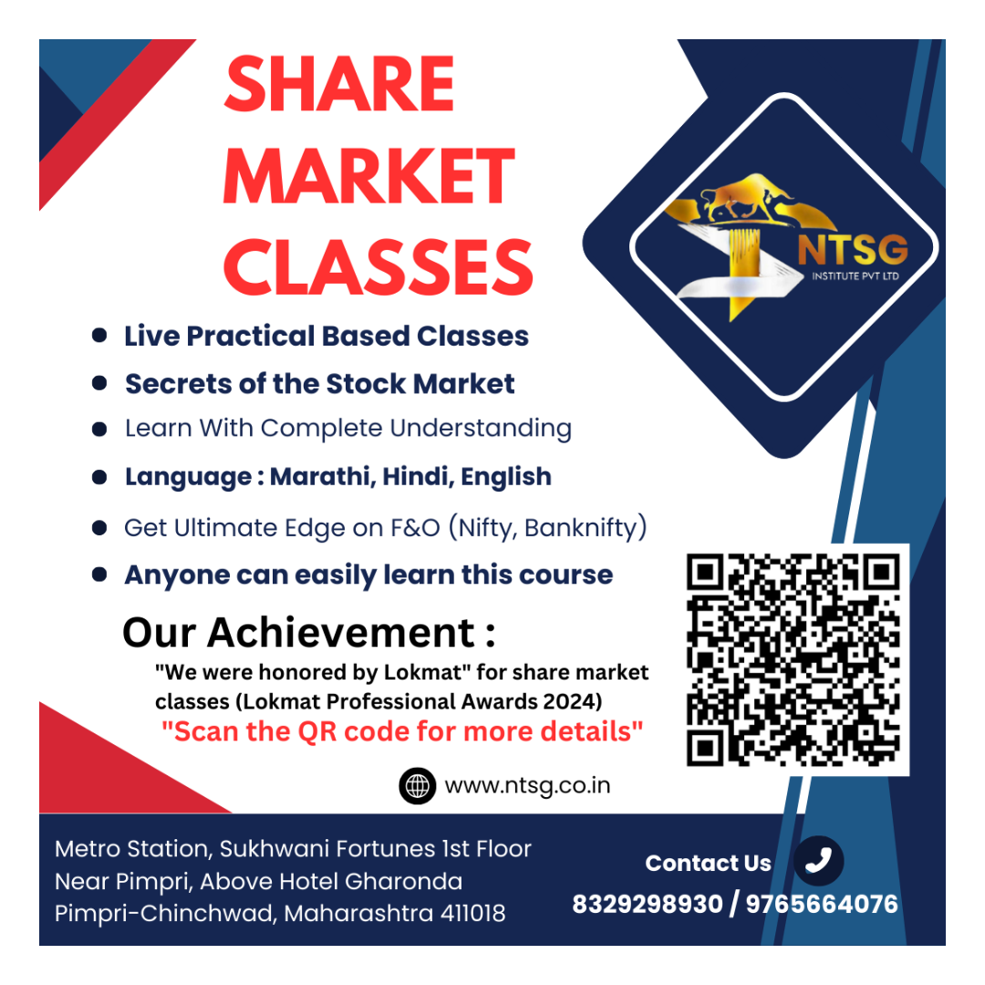 Share market Class in PCMC - NTSG Institute We provide live practical based classes you can get a demo sessions in live market. Anyone can easily learn this course we were honored by Lokmat ' for share market classes ( Lokmat Professional Awards 2024)